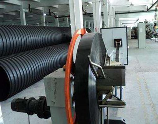 1.熱態(tài)纏繞成型熔縫質量高 從擠塑機口模擠出的處于熔融狀態(tài)的平料帶和U型料帶,按預定的位置均勻的纏繞在加熱的滾筒模具上,保證了結構壁管熔接縫質量。特別是結構設計中平料帶的熔接縫被聚乙烯包覆支撐管所覆蓋,提高了制品整體的抗外壓能力